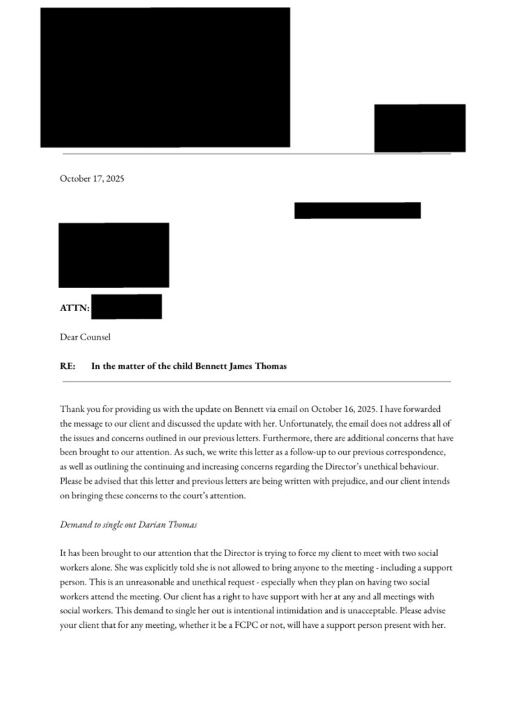 Another formal letter was sent to MCFD from my lawyer yesterday. We’re still asking the same basic questions: Why was my child taken? Where is the plan for reunification? Why is there still no transparency? Enough is enough. I will not be silenced — and I will not stop fighting for Bennett.