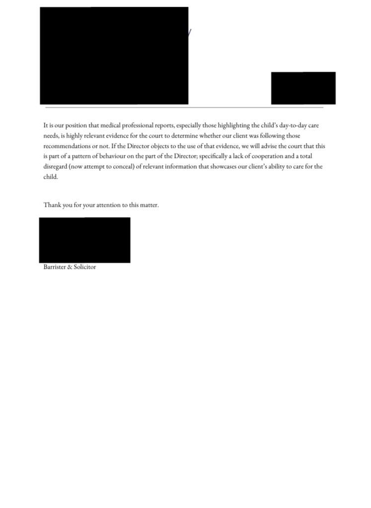 And let me be clear: this letter was written with prejudice. We’re bringing this to court. I’m done playing along with a system that pretends to care while actively hurting my child.